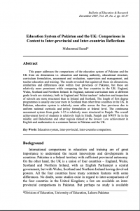 | This paper addresses the comparisons of the education system of Pakistan and the UK from six dimensions i.e. education and training authority, educational structure, curriculum formulation, assessment and evaluation, supervision and management, and teacher education and training. The results revealed that against all these six dimensions, similarities and differences exist within four provinces of Pakistan, but these are relatively more prominent while comparing the four countries in the UK: England, Wales, Scotland and Northern Ireland. In England, national curriculum tests at different grade levels are statutory; both in England and Wales teachers’ induction and inspection of schools are more structured than in Ireland and Scotland. The length of first degree programmes is usually one year more in Scotland than other three countries in the UK. In Pakistan, education system is relatively more alike across the four provinces due to uniform national curricula and policy formulation at federal level. The continuous assessment system from grade 1-12 is relatively more structured in Punjab. The overall achievement level of students is relatively high in Sindh, Punjab and NWFP lie in the middle; and Balochistan and other regions ranked at the lowest. Low achievement in English and mathematics is a common feature in Pakistan and the UK. |