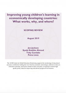 This scoping review responds to the increasing interest in improving early childhood education and care (ECEC) in economically developing countries. As much of the research underpinning ECEC interventions has focused on economically developed countries, it is timely to review available research about the effectiveness of interventions in the economically developing world. This review aims to assist researchers and project teams in ECEC to draw on the available evidence when planning interventions. It also aims to set evidence-based suggestions for future research on ECEC interventions in these contexts.