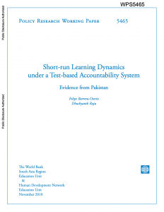 | Low student learning is a common finding in much of the developing world. This paper uses a relatively unique dataset of five semiannual rounds of standardized test data to characterize and explain the short-term changes in student learning. The data are collected as part of the quality assurance system for a public-private partnership program that offers public subsidies conditional on minimum learning levels to low-cost private schools in Pakistan. Sharp regression discontinuity estimates show that the threat of program exit on schools that barely failed the test for the first time induces large learning gains. The large change in learning between the first two test rounds is likely attributable to this accountability pressure given that a large share of new program entrants failed in the first test round. |