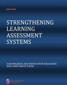 The purpose of this paper is to describe the current landscape in strengthening learning assessment systems and spark discussion and debate around potential areas for KIX investment. The paper is part of a series of discussion papers, drafted to support the engagement and consultation of developing country partners and technical experts in the initial design of the GPE Knowledge and Innovation Exchange. The ideas presented in the initial version of the paper served as a starting point for discussion and were modified significantly based on the consultation process, thereby resulting in this updated version. The consultations and revisions to the paper also informed a concept note that was developed to guide organizations wishing to access KIX funding, which will be made available in 2019.