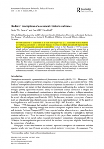 | Students conceive of assessment in at least four major ways (i.e., assessment makes students accountable; assessment is irrelevant because it is bad or unfair; assessment improves the quality of learning; and assessment is enjoyable). A study in New Zealand of 3469 secondary school students’ conceptions of assessment used a self?report inventory and scores from a standardised curriculum?based assessment of reading comprehension. The conception that assessment makes students accountable loaded positively on achievement while the three other conceptions (i.e., assessment makes schools accountable, assessment is enjoyable, and assessment is ignored) had negative loadings on achievement. These findings are consistent with self?regulation and formative assessment theories, such that students who conceive of assessment as a means of taking responsibility for their learning (i.e., assessment makes me accountable) will demonstrate increased educational outcomes. |