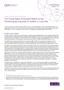 | The Annual Status of Education Report (ASER) survey is a household-based survey of school-aged children in all rural districts in India. It is the only annual survey that yields data on children’s basic learning levels in this country. It evolved out of the work of a non-governmental organisation called Pratham. This brief by the ACER Centre for Global Education Monitoring gives an overview of the ASER exercise and some thoughts on the influence that it has had in India and abroad. |